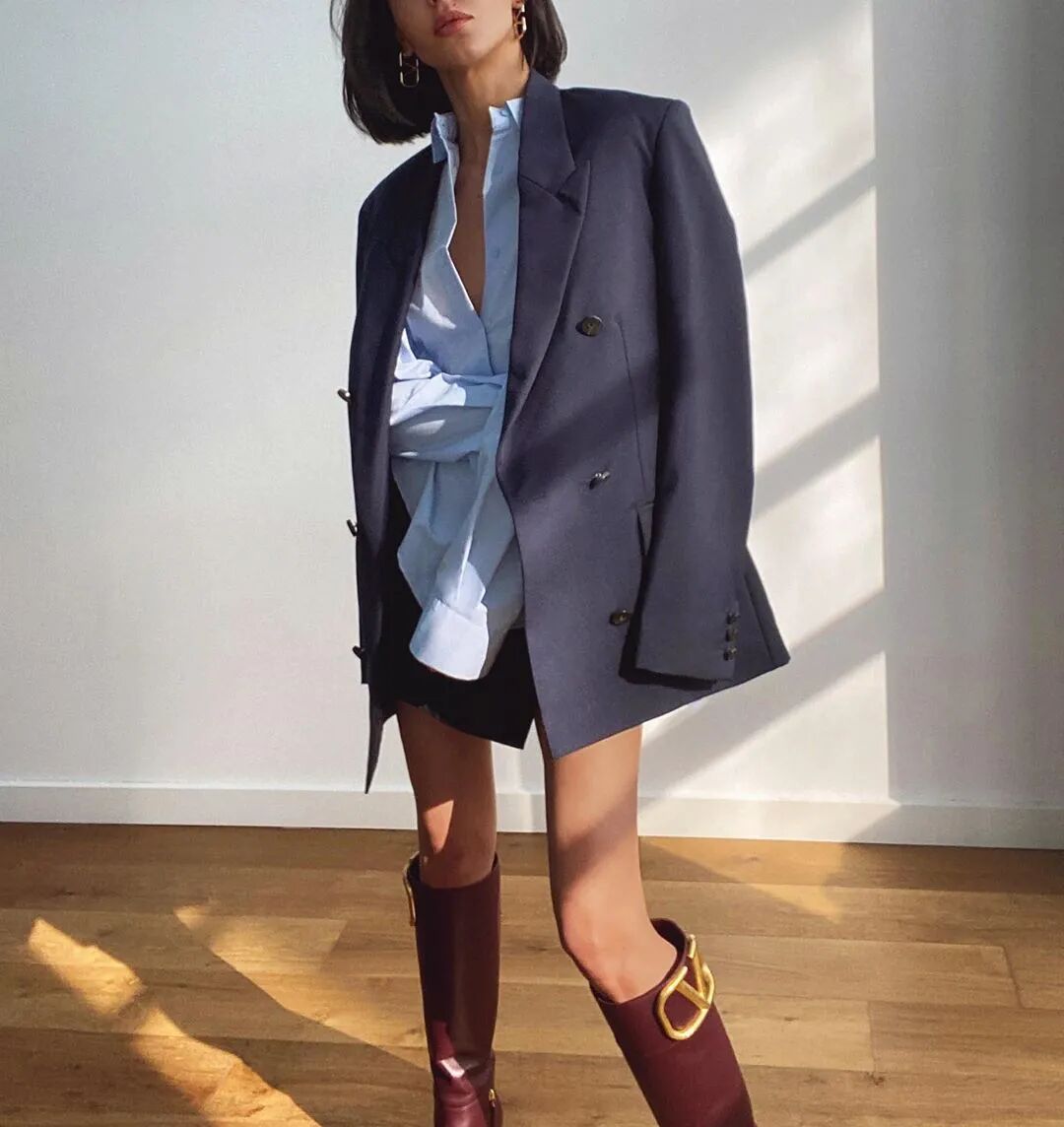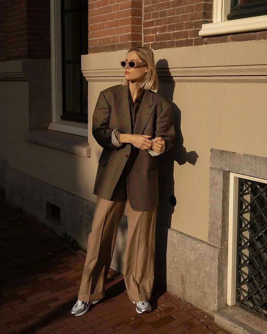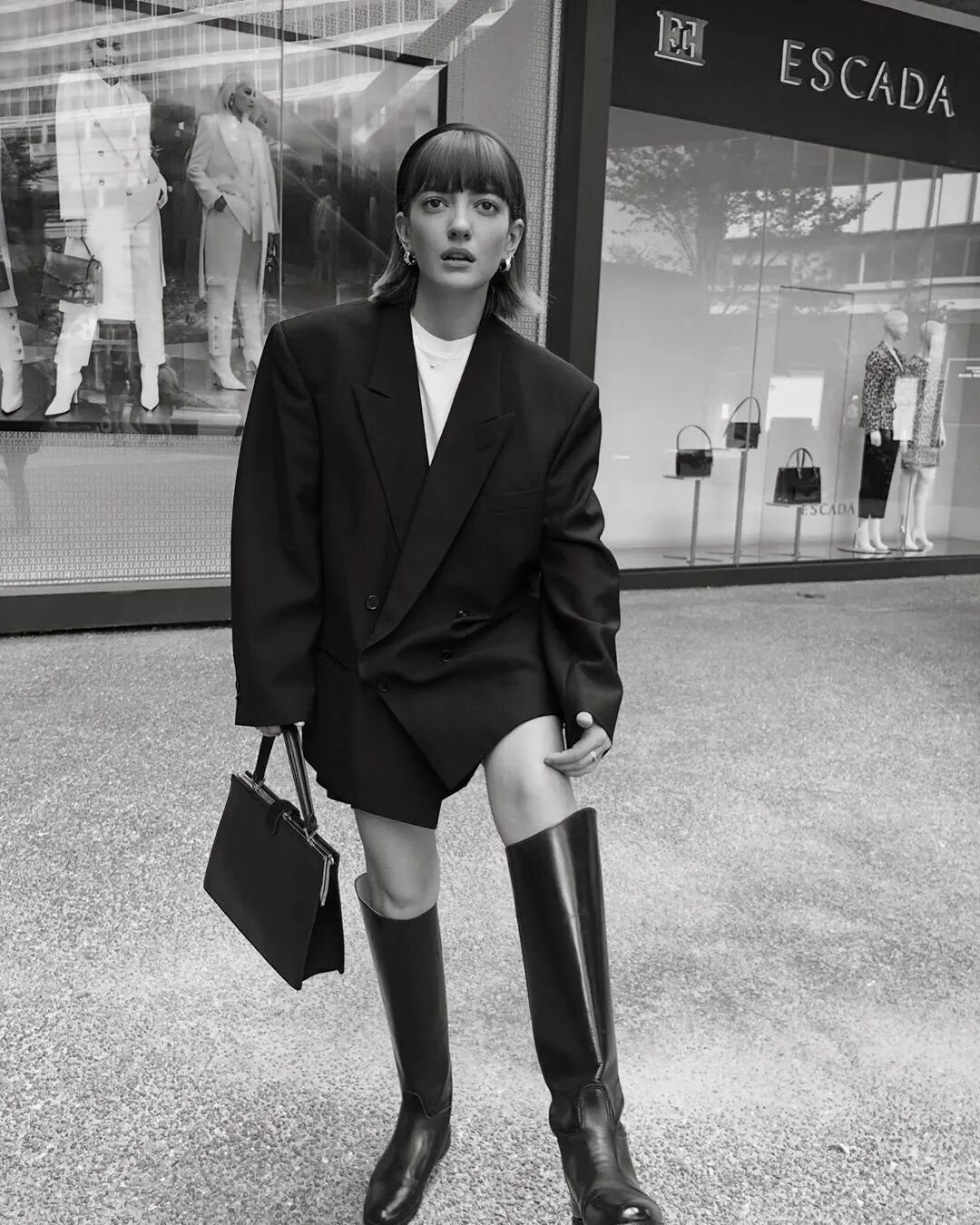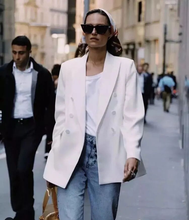 西装也是日常单品里最容易提升气场的单品之一,热爱中性风穿搭如我,就对它爱得深沉,哈哈▼Oversized的款式,随便一披上就有种潇洒的气质▼搭配上一些中性风的配饰也会让整体风格更偏帅气感,像是金属链条或是粗腰带就是很不错的选择▼西装干练,牛仔裤率性,两者搭配在一起更帅气又利落,中性感十足,还能为西装的整体添加几分清新的气息▼想要打造出更加时髦简单的西装look,选择套装是最简单的办法,但是也要在版型以及细节处凸显出自己的个性▼廓形西装+长靴的露腿穿搭,在柔美中融入了一份飒气的刚性,真实演绎了女人一旦帅起来,就没男人什么事了▼不过讲真的,无论你拥有多少件西装,最热衷的到底还是那些经典色系类的~白色西装搭配卡其棕阔腿裤,复古摩登的look就这样完成了▼我选择了一只白色的法棍手拎包,在整体复古的氛围上增加些许优雅小chic气质▼包包简洁大方的长扁型,就像以前富家小姐的手包似的,颇有种年代感的韵味。侧面的凹陷设计可以看出,这款包的工艺非常精致,就像个小酒窝似的,打开的质感也十分显贵▼
