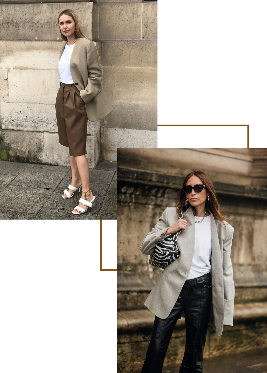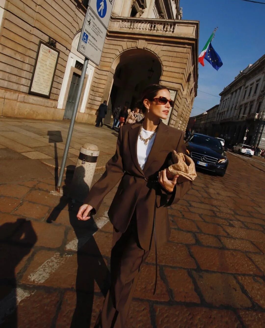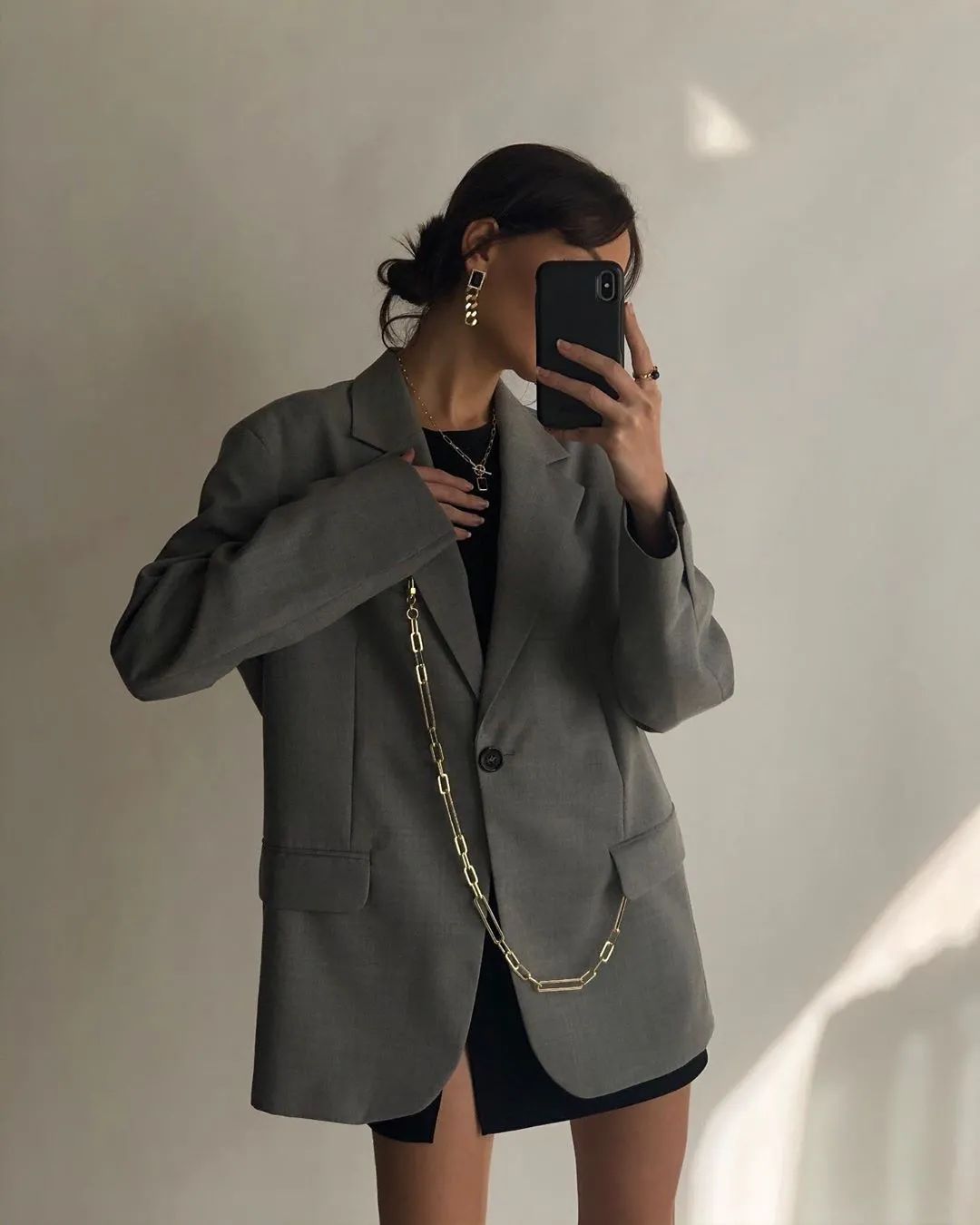 西装也是日常单品里最容易提升气场的单品之一,热爱中性风穿搭如我,就对它爱得深沉,哈哈▼Oversized的款式,随便一披上就有种潇洒的气质▼搭配上一些中性风的配饰也会让整体风格更偏帅气感,像是金属链条或是粗腰带就是很不错的选择▼西装干练,牛仔裤率性,两者搭配在一起更帅气又利落,中性感十足,还能为西装的整体添加几分清新的气息▼想要打造出更加时髦简单的西装look,选择套装是最简单的办法,但是也要在版型以及细节处凸显出自己的个性▼廓形西装+长靴的露腿穿搭,在柔美中融入了一份飒气的刚性,真实演绎了女人一旦帅起来,就没男人什么事了▼不过讲真的,无论你拥有多少件西装,最热衷的到底还是那些经典色系类的~白色西装搭配卡其棕阔腿裤,复古摩登的look就这样完成了▼我选择了一只白色的法棍手拎包,在整体复古的氛围上增加些许优雅小chic气质▼包包简洁大方的长扁型,就像以前富家小姐的手包似的,颇有种年代感的韵味。侧面的凹陷设计可以看出,这款包的工艺非常精致,就像个小酒窝似的,打开的质感也十分显贵▼