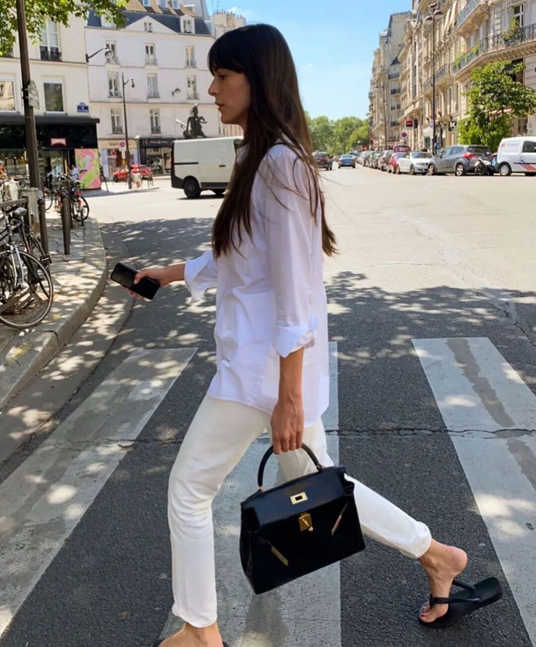 近几年来,“无性别穿搭”俨然已成为重要的穿搭风格之一,它将女性的优雅和男性的率真相结合,给人们带来了全新的审美体验与着装感▼所谓“无性别风”,其实就是日常俗称的“中性风”,追求的是一种“人人都适合”的更广泛的无差异感▼无性别风要想穿得好看,一定不能穿太紧身的款式,而宽松的款式看起来会更潇洒一点,更适合无性别穿搭▼最简约的时髦黑白灰,或者是色调饱和度不那么高的单色系,也最容易打造出性冷淡的feel▼像周雨彤最近就是接二连三的整套西装上身,酷酷的同时还带点小女人的性感韵味▼大表姐刘雯就更加不用说了,她的私服基本上都是偏中性的,简单休闲的单品也被她穿出了与众不同的酷飒清爽感▼那么,今天就来跟大家从最基础的、最容易穿出无性别风格的单品开始聊聊吧,中性风狂热份子或者早就想尝试这种风格的你们,千万别错过今天的内容啦!▼衬衫是一年四季都必备的单品,而中性风的款式略带“粗犷”,自然而然就有着一股性冷淡的迷人风格▼最简单的方法,就是去你男朋友的衣柜里拿上一件白衬衫,无论怎么搭配,恰到好处的oversized款式总能让你帅气与性感兼具▼因为男装的衬衫还是要比女装的衬衫挺拔硬朗一些的,所以很容易就能穿出挺拔的感觉▼白衬衫搭配牛仔裤,把衣尾扎进裤腰是关键,配上一头浓密的长发,满满的港风氛围得以呈现▼比起紧身牛仔裤的干练,宽松的牛仔裤则多了一些休闲随性,跟知性的衬衫搭配在一起,也别有一番风味~▼除了白衬衫,其他款式的衬衫也是不错的选择,特别是经典的蓝色条纹衬衫,更加的彰显干练气质▼还没有正式入秋的地方,短袖的衬衫仍然还是能穿上的,内搭一件小背心,有层次感的同时时髦感也瞬间up▼衬衫的颜色选了比较深的蓝色,搭配短款黑色西装跟五分西装裤,很“假小子”的穿搭哈哈,故意没塞的衣尾,也当做是给整个偏灰调的look点缀了▼这双黑色的乐福鞋,鞋身只有一处不规则的金属logo设计,简洁大方又经典,方头的设计更有种中性的时髦感。皮质的光泽感跟银色的金属的对比感显得整体十分高级,还可以一鞋两穿,平时可以当一双正儿八经的通勤鞋,下班了就可以踩着脚后跟穿,更随性一些~▼△点击上方链接购买△