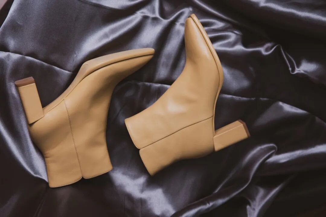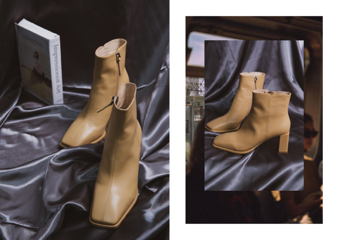 全身都是暖黄和奶油白的配色,我就选择了奶茶色系的这双方头短靴,也让原本酷酷的穿搭多了一丢丢温暖的感觉▼