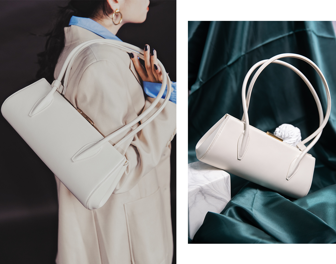 因为大多数单品都是比较偏严肃正经风格的,所以在包包的选择上,我特意选了这款看上去有点柔美浪漫的法棍包,刚中带柔,也是恰到好处~▼这款包包最特别的地方就在于,它在手柄上增加了褶皱和打结的设计,有一股浓浓的随性慵懒感▼看似扁平的包身,实则容量十分完整,可以放入不少日常必需品。它还附了一条金属链条肩带,比市面上大部分的腋下包都来得贴心!可以随时解放双手~可搭配度也很高,是一款很适合日常出门的包款,出门不知道背什么包,随手一背上就可以出门了▼△点击上方链接购买△
