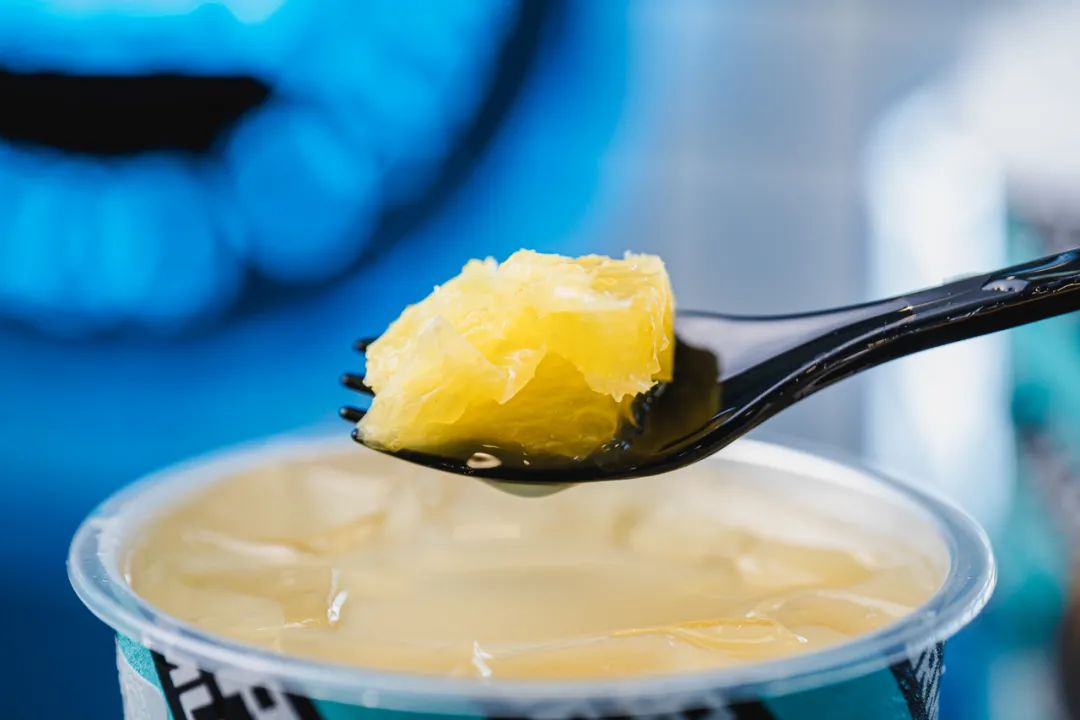 喝到下面有额外惊喜!除了藏着爽脆的脆波波以外,还有爆汁的香橙果肉,双重口感暴击,瞬间将闷热感抛到脑后!