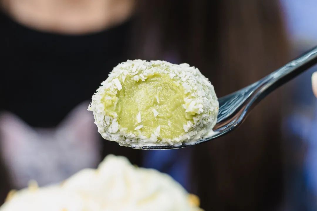 将软糯的奶薯球放在椰蓉上翻滚后,立马扣在奶霜上,整杯茶饮都有了浓浓的椰香味!只要一小口,就能尝到奶味与椰香融合的口感,太绝了!