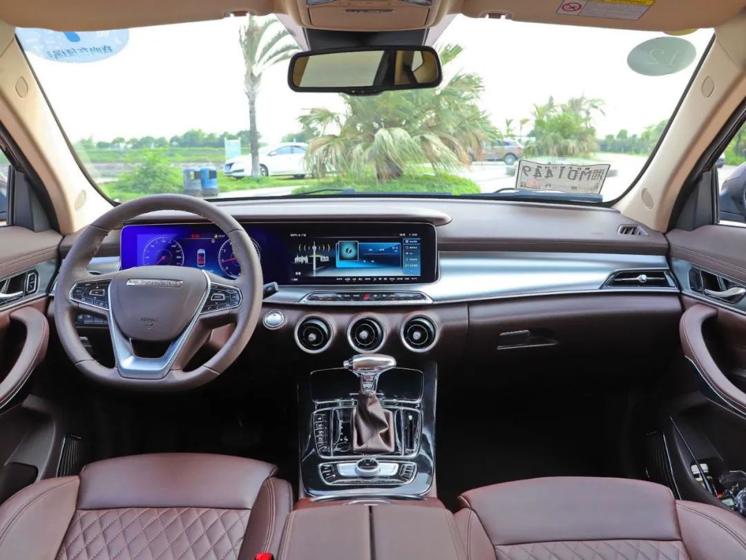 内饰设计上也同样具备了越级的味道。棕色内饰、中控大面积皮质包裹、大联屏、圆形出风口,包括肉眼可见的方向盘、门板上的皮质包裹还有座椅记忆等越级的配置,看起来还是挺吸引人的。