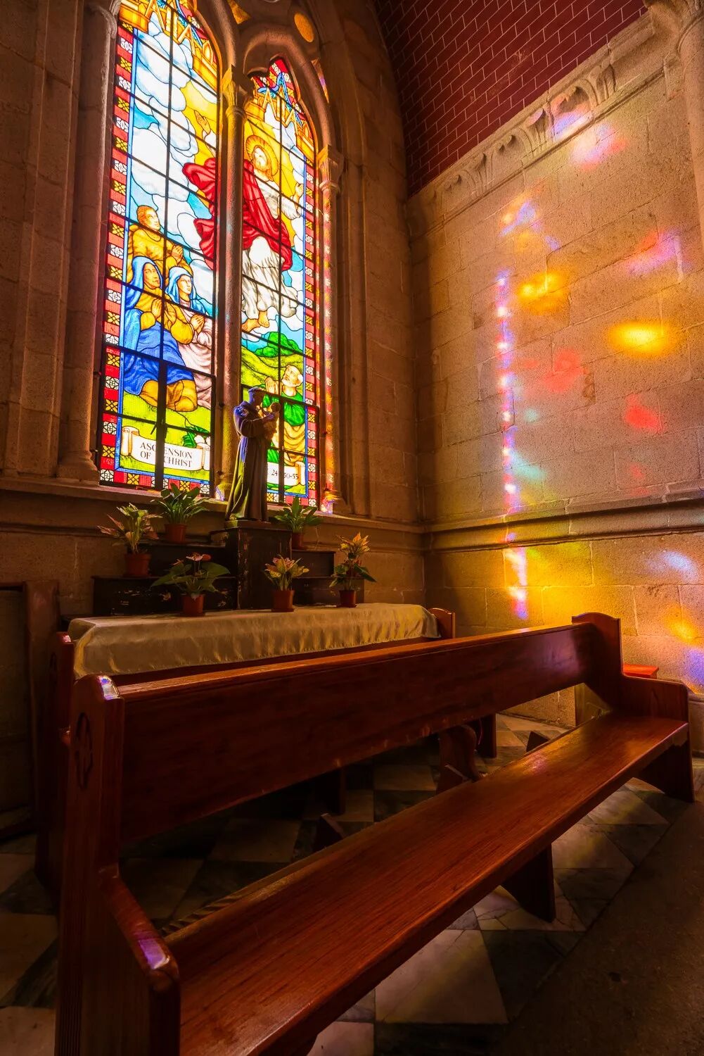 每当阳光从彩色玻璃穿过,形成了绚丽奇幻的光线效果,浓烈的宗教氛围令人恍若置身上帝之所。