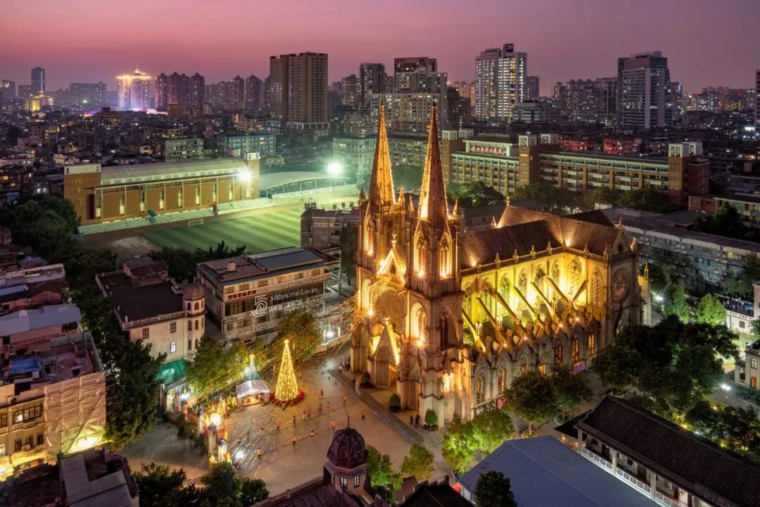 这是坐落于广州市中心的圣心大教堂,当地人都亲切的称呼它为“石室”。垂直航拍的视角让各位新老广州人眼前一亮,众人纷纷惊叹:“从未想过石室还有如此特别的一面。”