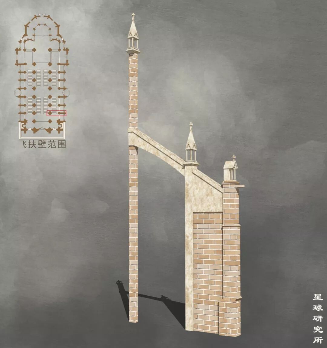 飞扶壁、柱子与墙体、窗户的关系,制图@张靖/星球研究所
