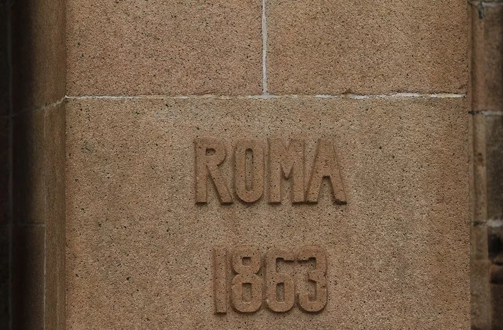 教堂两侧有两块刻有日期及地点砖石,摄影师@潘伟光