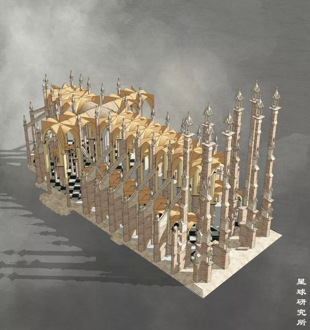 教堂内部结构仰视图,制图@张靖/星球研究所