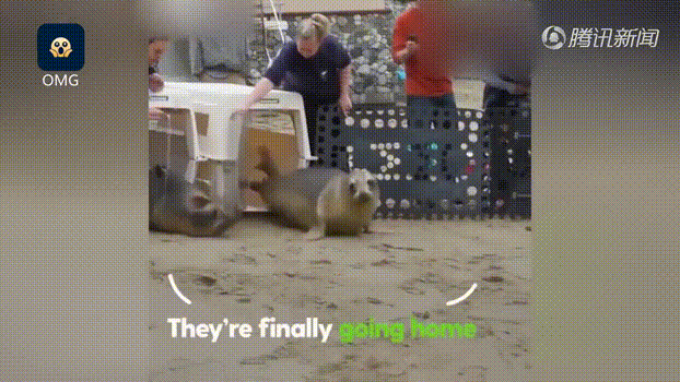 打开笼子放生的一瞬间,小海豹迫不及待地冲向了岸边: