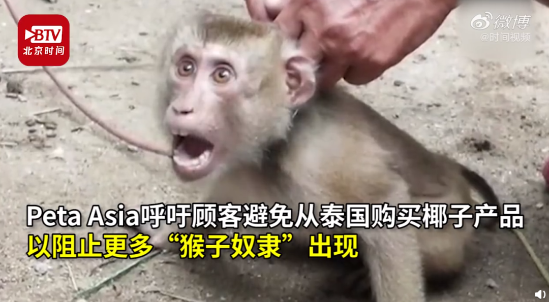 在泰国,有一群“猴子奴隶”,被当地农场训练出专门爬树采摘椰子的“本领”。