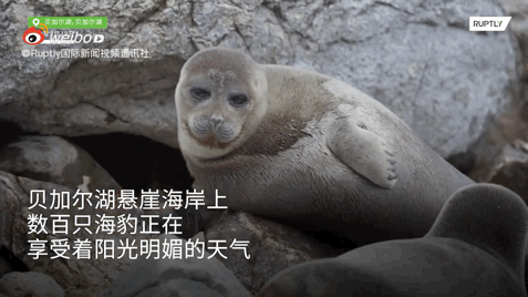 镜头拉近,一群小海豹躺在岸上,圆滚滚懒洋洋,也太治愈了。