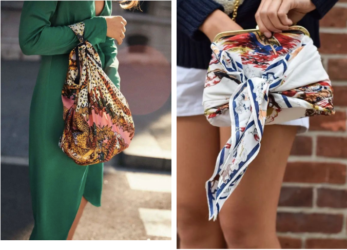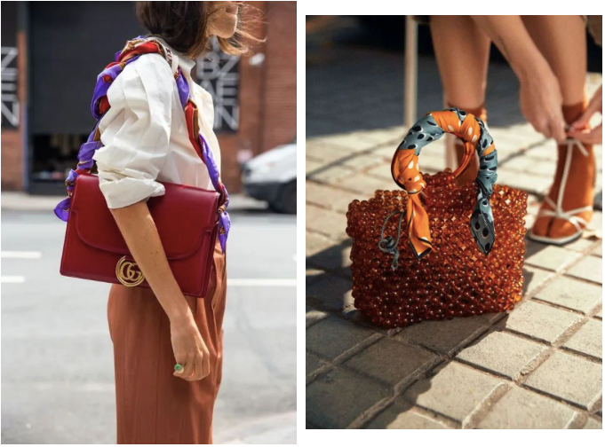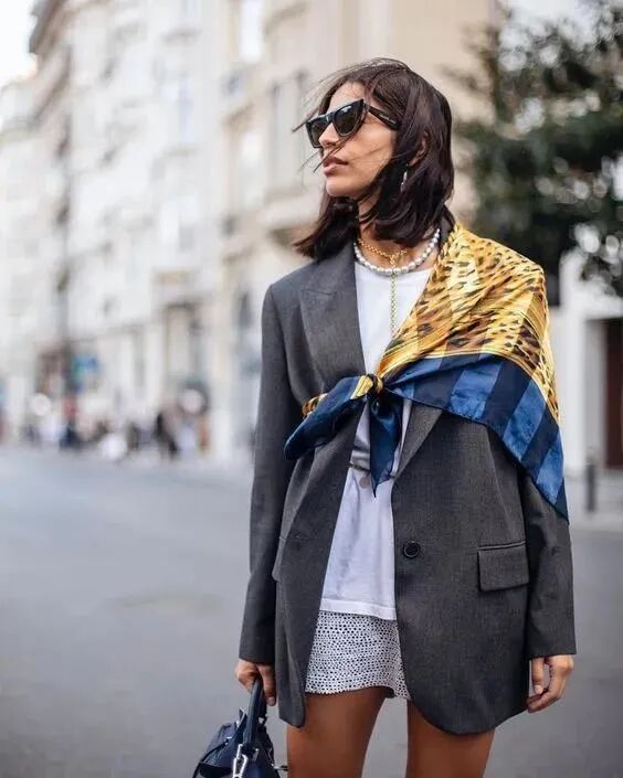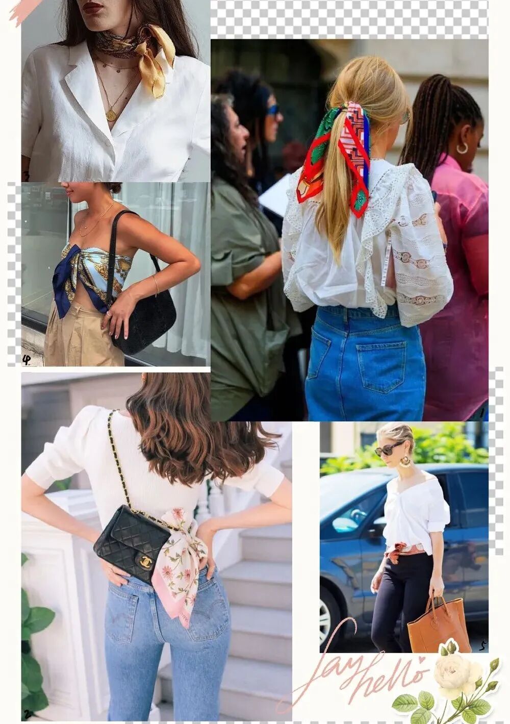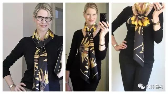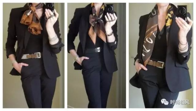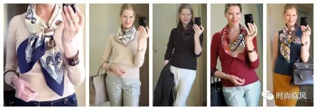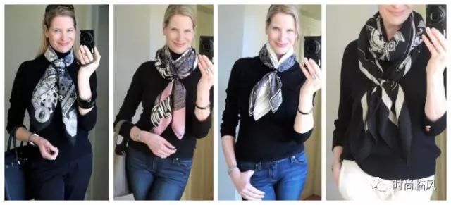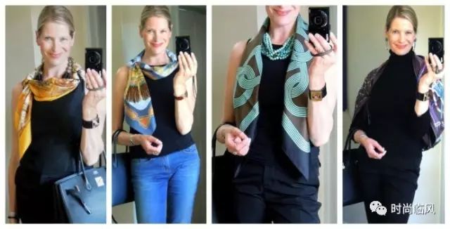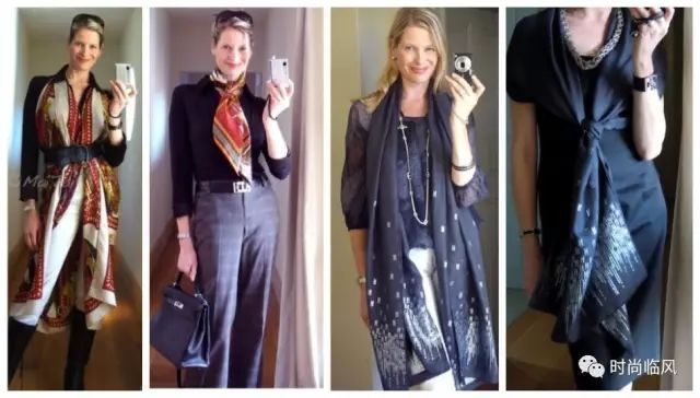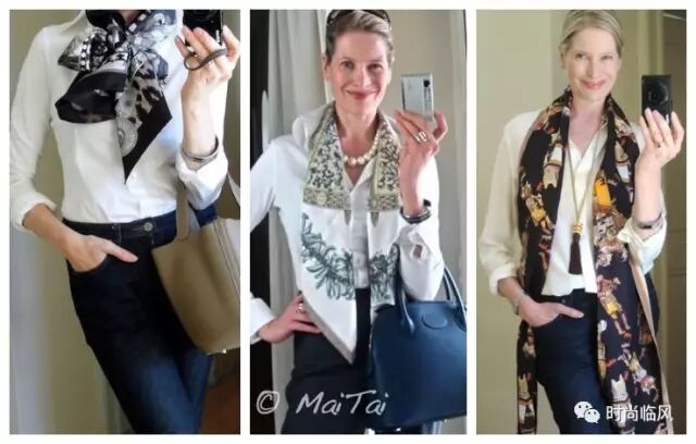 丝巾最优雅的系法在颈间,搭配不同的衣服演绎不同的韵味。玩撞色是缤纷绚烂的花园;用顺色是交相辉映的有趣;用亮色点缀素色衣衫是画龙点睛的巧妙。即使是简单地系在脖子上,也会因不同的系法而呈现不同的风情,斜着戴更有少女的俏皮感。细长的窄丝巾飘在胸前,长短不一的两端制造层次美感,随意垂下来的洒脱感足以修饰正面造型,使整体搭配更丰富。当你拥有了丝巾,衣橱里的白衬衫、黑大衣,各种性冷淡衣服都可以拿出来了。国外一个名为maitai女人的丝巾戴法简直是标准教材。maitai气质很好,穿着都是干练利落型。偏向经典款式可能会显得有些老气,衣服灰暗色为主,明亮色很少,40+可以照搬。土棕色系,是一个非常显气质的色,搭配时可以和腰带颜色呼应一下,肤色不白的请谨慎选择。蓝黑色色系,更为百搭一些,牛仔裤西裤白裤子都可以的。无袖衫的几种戴法,可以与项链颜色呼应,最后一张当披着当罩衫是很聪明的选择。搭配各色开衫,可以系环形也可以系长形,里面穿白色或者丝巾上有的浅色系就可以。下面这部分好几个是国内比较流行的系法,但是我们想提醒一下,身材不够挺拔的 ,尤其慎用长围巾直接拉长身体的系法,这样身体的缺陷全部会暴露。还有一种 ,是和皮草围脖一起使用。这是一种非常聪明的搭配,弱化了皮草的贵气,增加了色彩感。几个非常适合上班的搭配,尤其适合在写字楼里工作的高级白领。画龙点睛的巧思避免了装包的尴尬,亮面丝绸彰显质感,绚烂色彩打破无色系包包的沉闷。如果你有精致的五官,可以将它包在头上,像文艺片里的女主角,浪漫心情由此而生。系在脚腕或手腕,洒脱而不羁,让人瞬间变身时髦小女人,穿T恤牛仔裤时,尤其可以用它拾起一份精致。