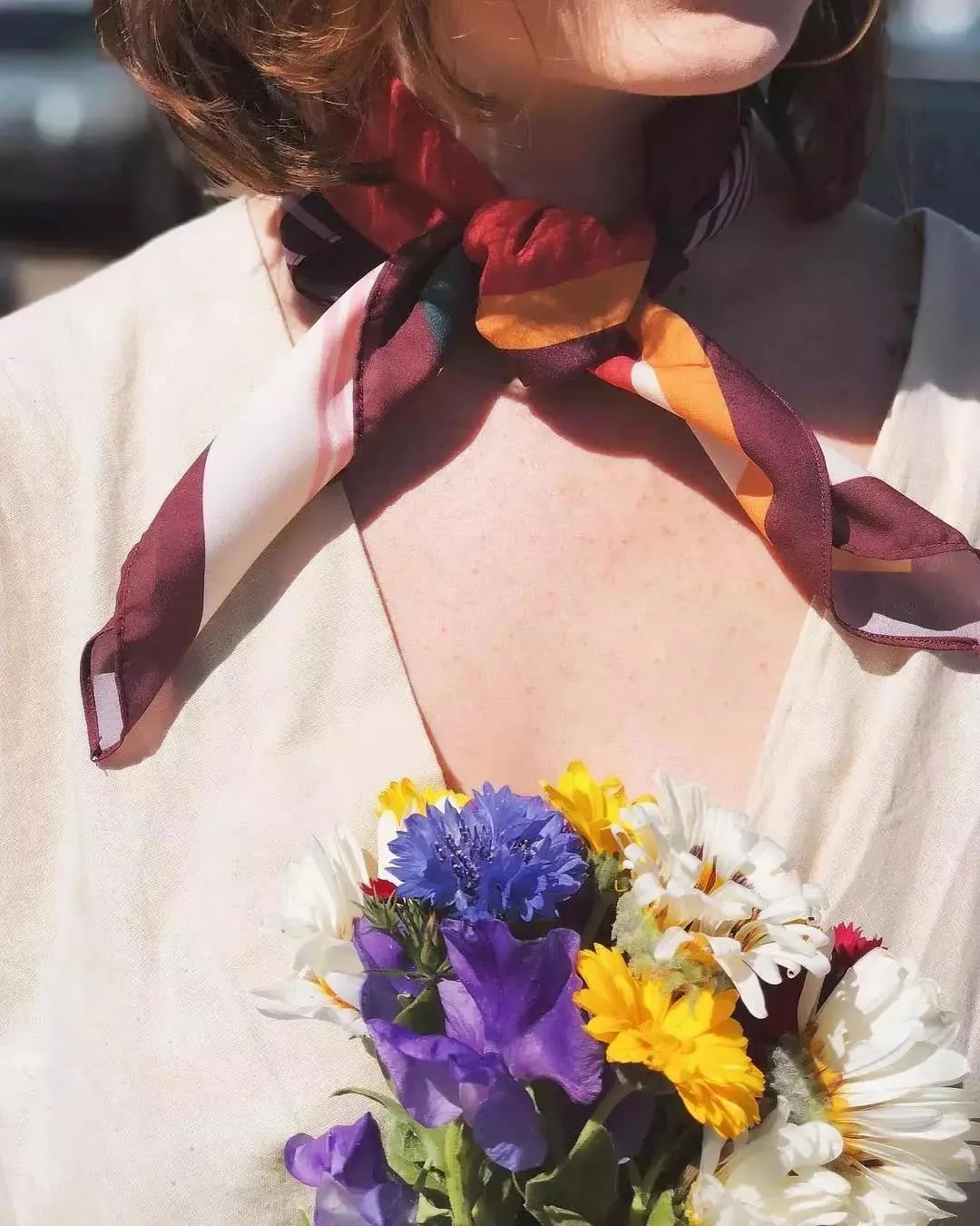 在我眼里,丝巾就是女人的心事絮语。飘逸轻盈,系于颈间