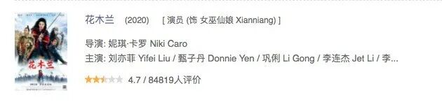 如今《花木兰》已经沦为巩俐职业生涯评分最低的作品,比前些年被疯狂吐槽的《西游记之孙悟空三打白骨精》还要低不少。