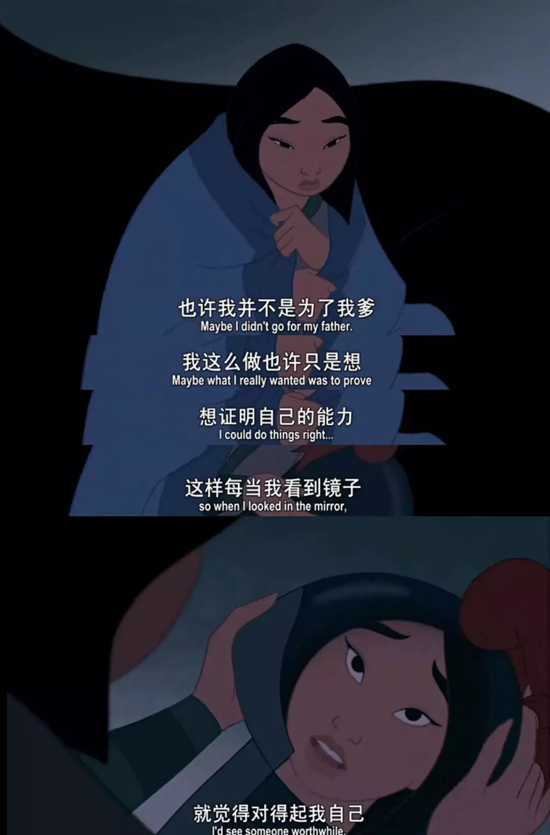 迪士尼的动画版里,木兰是个普通女孩,相比军营里的男战士有一定的弱势,但凭着努力和机敏,她获得了认可和尊重。哪怕它追根究底是一部歌舞动画片,也无损木兰的勇敢坚强。