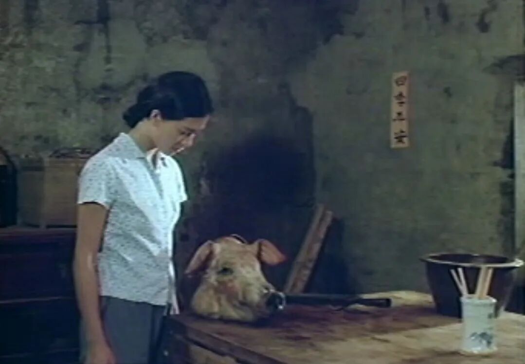 丢下猪刀,林市爬出房外来到灶边,熟练的生起一把火,取来供桌上摆放的几个纸人与纸衣裤,一一在火里烧了,再端来几碗祭拜的饭菜,就着熊熊的火光,在灶边猛然吞吃,直吃到喉口挤胀满东西,肚腹十分饱胀,林市靠着温暖的灶脚,沉沉的、无梦的熟熟睡了过去。持续有大半年,阿罔官成为鹿城的谈话中心,先是陈厝庄的人、再来是办案人员、接着是鹿城各镇角的人物,齐涌向阿罔官住处。“哪给我看到,我还容她杀人。杀猪仔陈救过我,有恩于我,算是我的恩情人咧。”阿罔官以她叽轧的喉音说。她依旧一丝不苟的绾个光溜溜的发鬏,一身白色大祹衫也浆得挺白硬直。“有啰,就是被我看到,天公有眼睛。”阿罔官仔细述说:“这个林市,自从嫁过来,跟人不相似,我就比较留意她。那几天我看隔壁无人出入,就探头过去看看,哎哟,一屋子,屋顶墙壁上都是血,都已经干了。还看到林市那贱人,装一大藤箱不知什么东西,晚上三更半夜,溜出后外到海尾那芦苇丛要去丢,我偷偷跟过去,看到伊从藤箱倒出一块又一块尸身,有手有头,还要回来装第二回,我哪容她,赶快就报官啰。”人们多半站着,想继续听下去,阿罔官于是从林市阿母说起,再一一谈到林市种种,如果听的对象是妇女,阿罔宫会压低声音道:“后来这阵子都不哀哀叫,不知是否杀猪仔陈对伊无办法。嘻嘻,我还听到杀猪仔陈骂伊讨客兄呢!”“古人说,无奸不成杀。”阿罔官严正的说。“你看伊母女两人,全犯在这项事情上,做查某人不可不慎啊!”“不是我爱讲自己好,先前就闹一场吊鬼,还好我命大,杀猪仔陈福浅,这就去了。”“真是天不照甲午,人不行天理。我就说林市是有福不知守,你想伊嫁给杀猪仔陈,上无公婆,下无姑叔,又免出海下田,天天不必做就有得吃,这款命要几世人才修来,哪知查某人不会守,还败在这款事情上。”“这款事,查某人忍忍也就过去,哪有胡乱唉唉乱叫,闹得四邻皆知,害我们做查某的都不敢替伊辩解呢!真是。”然而话有谈完的时候,最后当人们纷纷要离去,阿罔官总会叹口气,归结的说:“实在是冤孽啊!做阿母的出了事故,她们这一家风水不好,现在女儿又为同样事情杀人,命中注定,实在是冤孽啊!”说明:由于公众号字数限制,故事中有部分段落节略。配图均来自1986年小说同名电影《杀夫》。