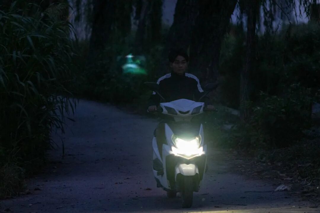 9月1号早上6点,披上雨衣,阿月就骑着电动车出发了。在这条村子通往县城的必经之路上,同行者有不少,毕竟暴雨再大,也挡不住生活。电动车的电量能骑50公里,正好够一个来回。