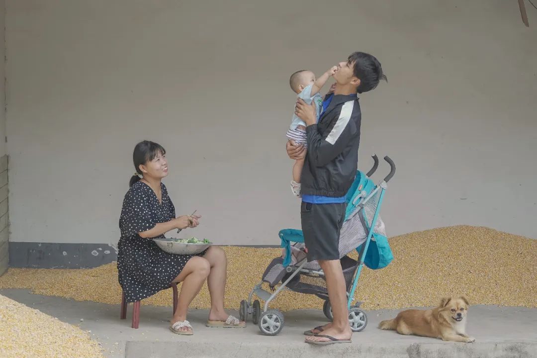 两个孩子都被寄予了这个家庭全部的爱,从名字里就能看出来。3岁的大女儿名字里有一个「稼」字,因为她是鸡年出生,夫妻俩希望她以后不愁吃的。今年1岁的老二是个男孩,名字里有个「锦」,寓意前程似锦。现在,3岁的大女儿最喜欢做的事情是喂家里的猪和鸡,猪一天要喂两顿,都是大女儿喂。每天,阿星都会教她背唐诗、三字经。她继承了阿星活泼、开朗的性格,见到谁都话多,爱笑。这样的笑容,在村子里那些留守儿童的身上是不多见的。