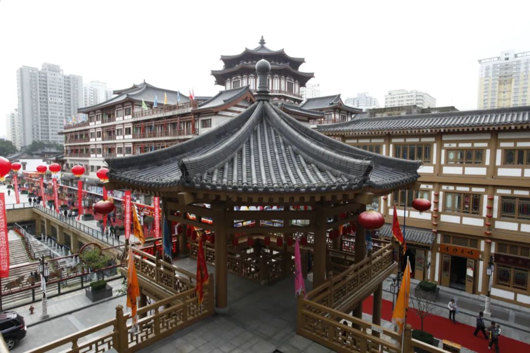 当时的“西市”服务于平民百姓,也是国际货品进入长安的通道。这里商贾云集,邸店林立,物品琳琅满目,贸易极为繁荣。如今唐长安西市原址上,一座名为大唐西市的小镇重新建立。