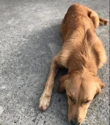 10月26日,江苏某公司的大门口躺着一条脚上都是伤的金毛,它忧郁地趴在那,一动不动……