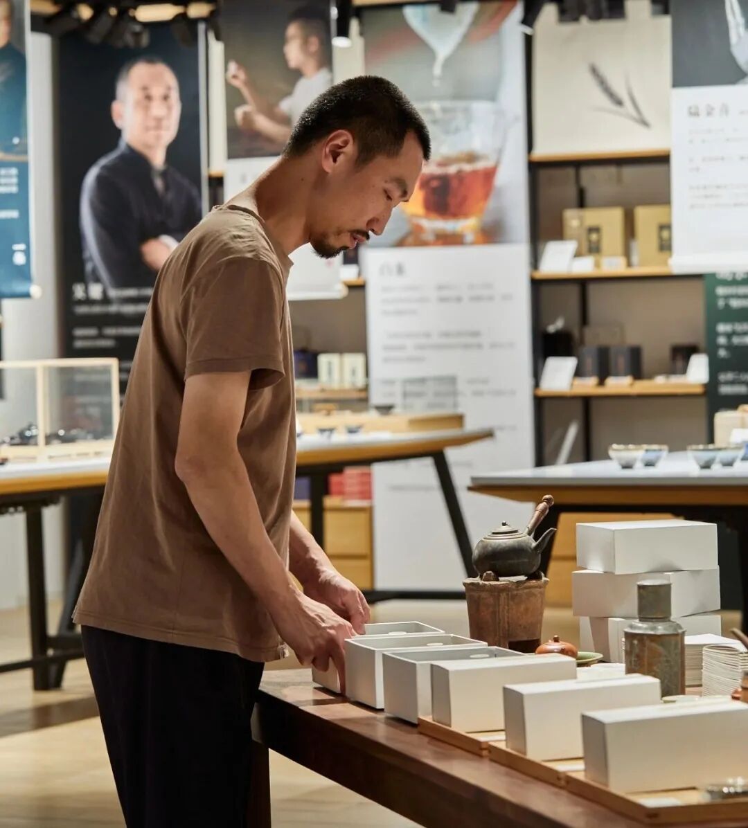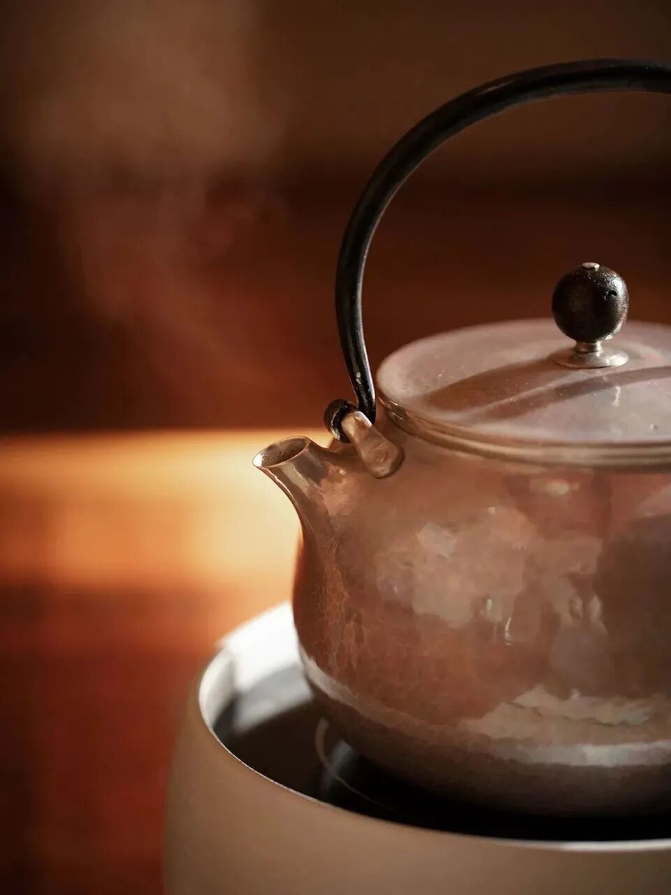 睿衍自幼痴迷音乐、绘画。习茶后,他耽于器物之美,并钻研生活美学。在走访多家国内和日本老工坊,反复向锤揲匠人们“取经”之后,他开创了“宽山集美堂”,一心铸造至美的金银汤沸等器物。2021年,宽山更是把店铺开到了日本京都。
