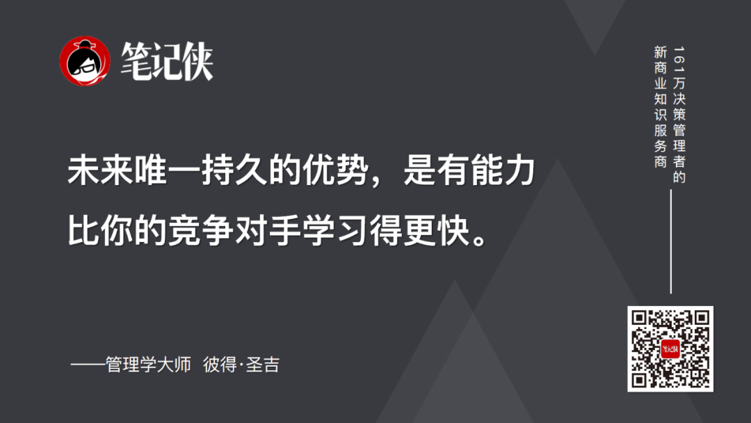 管理学大师彼得·圣吉说:“未来唯一持久的优势,是有能力比你的竞争对手学习得更快。”