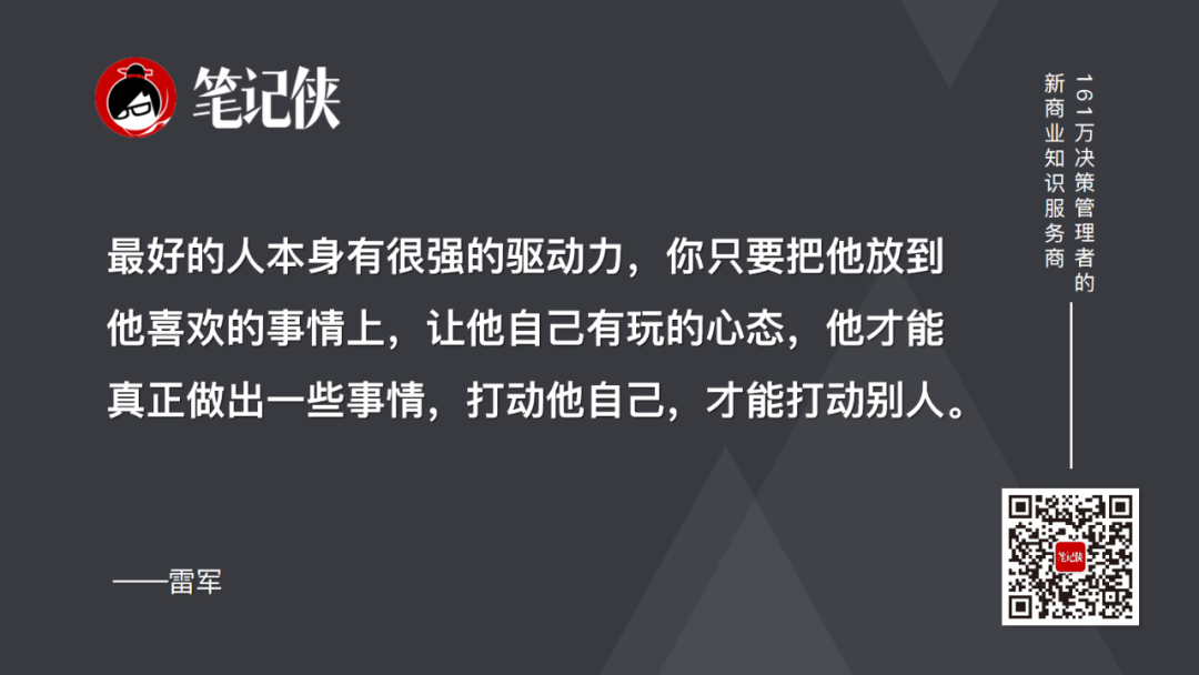 最好的人本身有很强的驱动力,你只要把他放到他喜欢的事情上,让他自己有玩的心态,他才能真正做出一些事情,打动他自己,才能打动别人。
