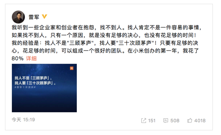 雷军找人、用人,只有一个原则,用最好的、最合适的人。