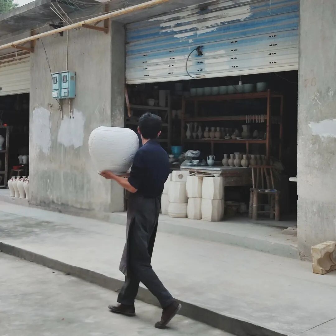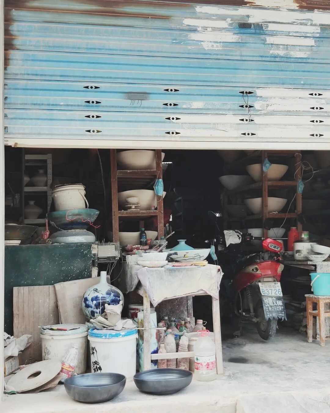 这座传统的柴窑(相比气窑,柴窑烧制的瓷器更为油润,但受天气、木柴等因素影响,烧窑难度高)距叶云的家虽有四十分钟车程,她却轻车熟路。两年前,她曾是景德镇最早在快手上记录开窑(开窑:指把已经烧好的陶瓷从窑内搬出)时热闹场景的主播,“把待烧的陶坯(陶坯:指陶制器皿的生坯)码进窑里叫做‘满窑’。柴窑每个月烧两次,每次烧26个小时,窑内气温能达到1300多摄氏度,能把铁烧没了。自窑烧起来,要经过四天左右的冷却才能开窑。满窑和开窑时像打仗一样,入窑一色,出窑万彩。不仅做瓷器的人会过来,现在还有一排直播的人。”