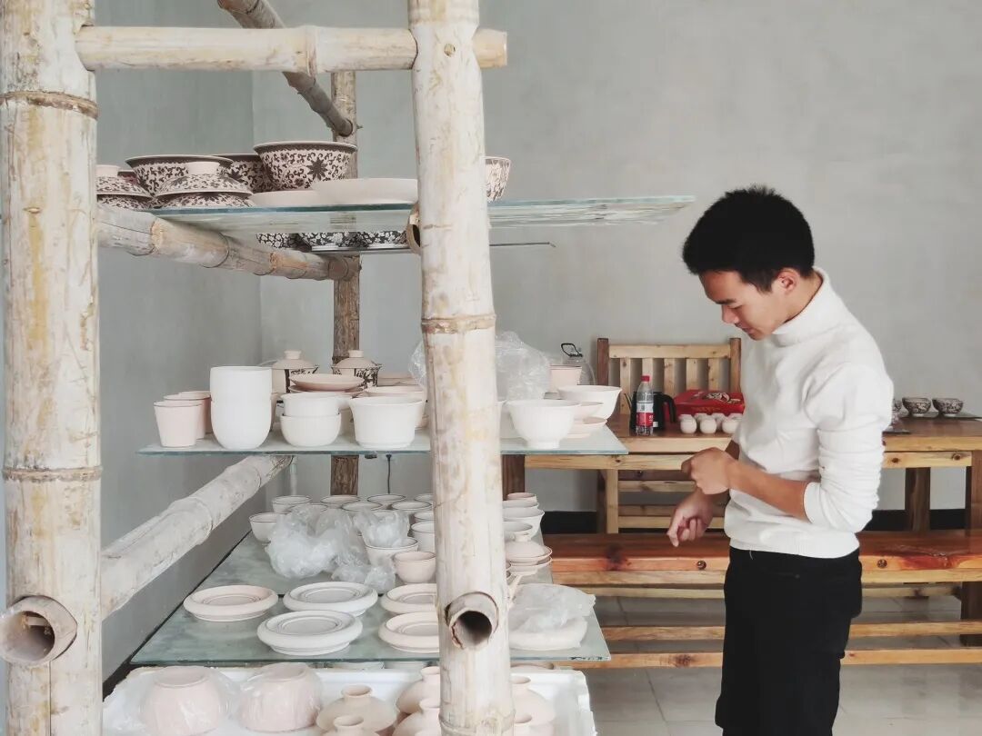 “像大多数开店的人一样,我的店也开在景区,面向游客,进一些贴花的瓷器,一个平均几十块钱,靠走量维持生计,只在空余的货架上,放一些自己设计的作品。”叶云记得当时的实体店有三层,每层大概有一个客厅的大小,因为店铺是自家的,不用交房租,不至于亏本。但开店时的2013年,景德镇的旅游业已经开始走下坡路,游人稀少,即使最旺的十一黄金周,