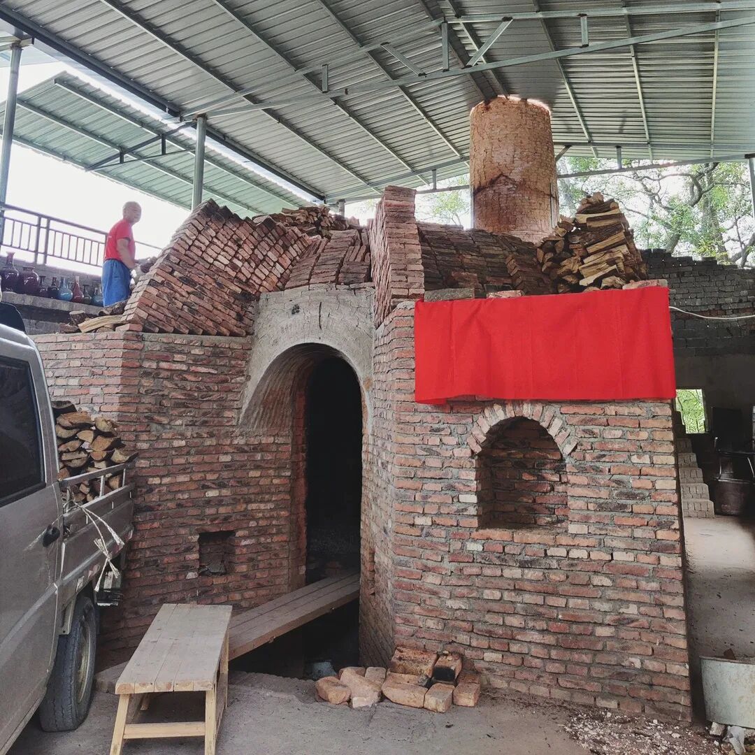 砖砌的窑不到二层楼高,像半个横着被切开的鸭蛋,一端支起高耸的烟囱。窑主人一家把一部分柴火码在窑口周围,一部分则盖在窑上。叶云到来时,烧窑时的烟正从烟囱里冒出来。