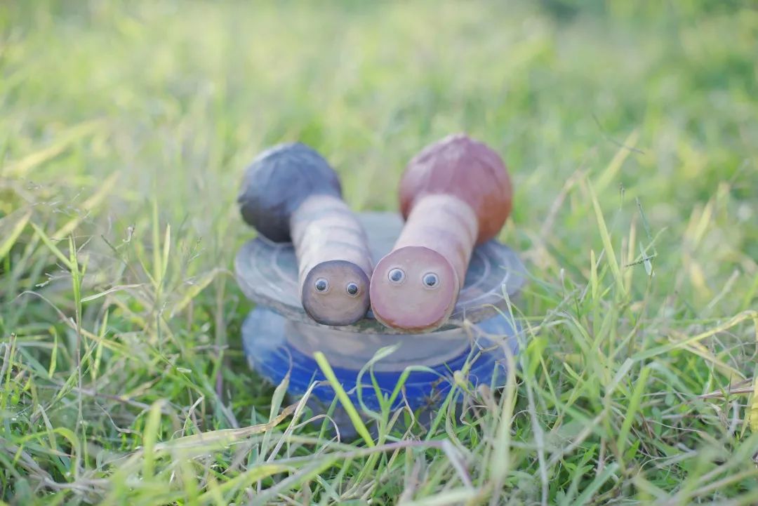 这是一组“蜗牛”,它的睛特别突出,没有嘴巴,耳朵也被遮掩在毛发的肌理里。“当时想做两个大头,感觉跟自己的状态有点像,每天你就睁着眼睛看到很多东西,但很多声音却听不到、很多事说不出口,像蜗牛一样,拖着个脑袋往前走。”