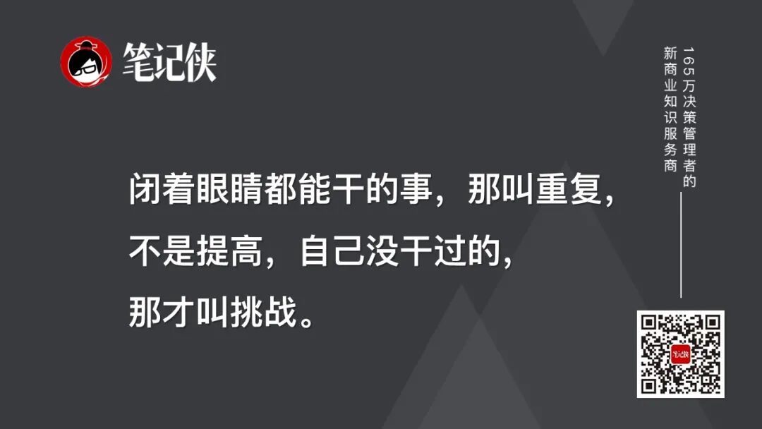 不管做什么,去干困难的事,不要干轻车熟路的事。闭着眼睛都能干,那叫重复,不是提高,自己没干过的,那才叫挑战。