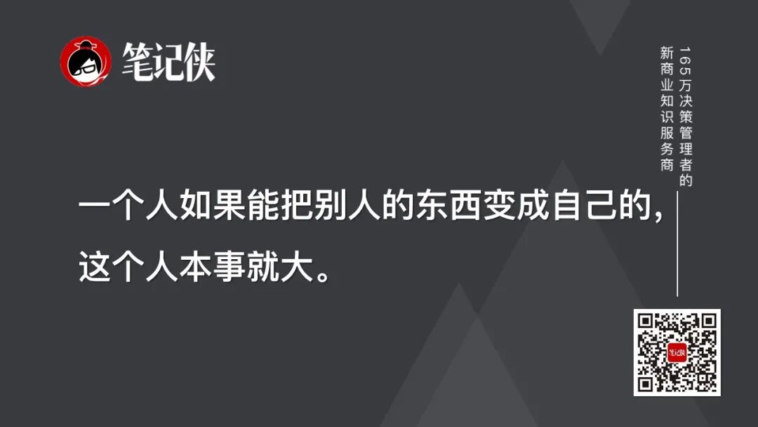 毛泽东讲过一句话,一个人如果能把别人的东西变成自己的,这个人本事就大。