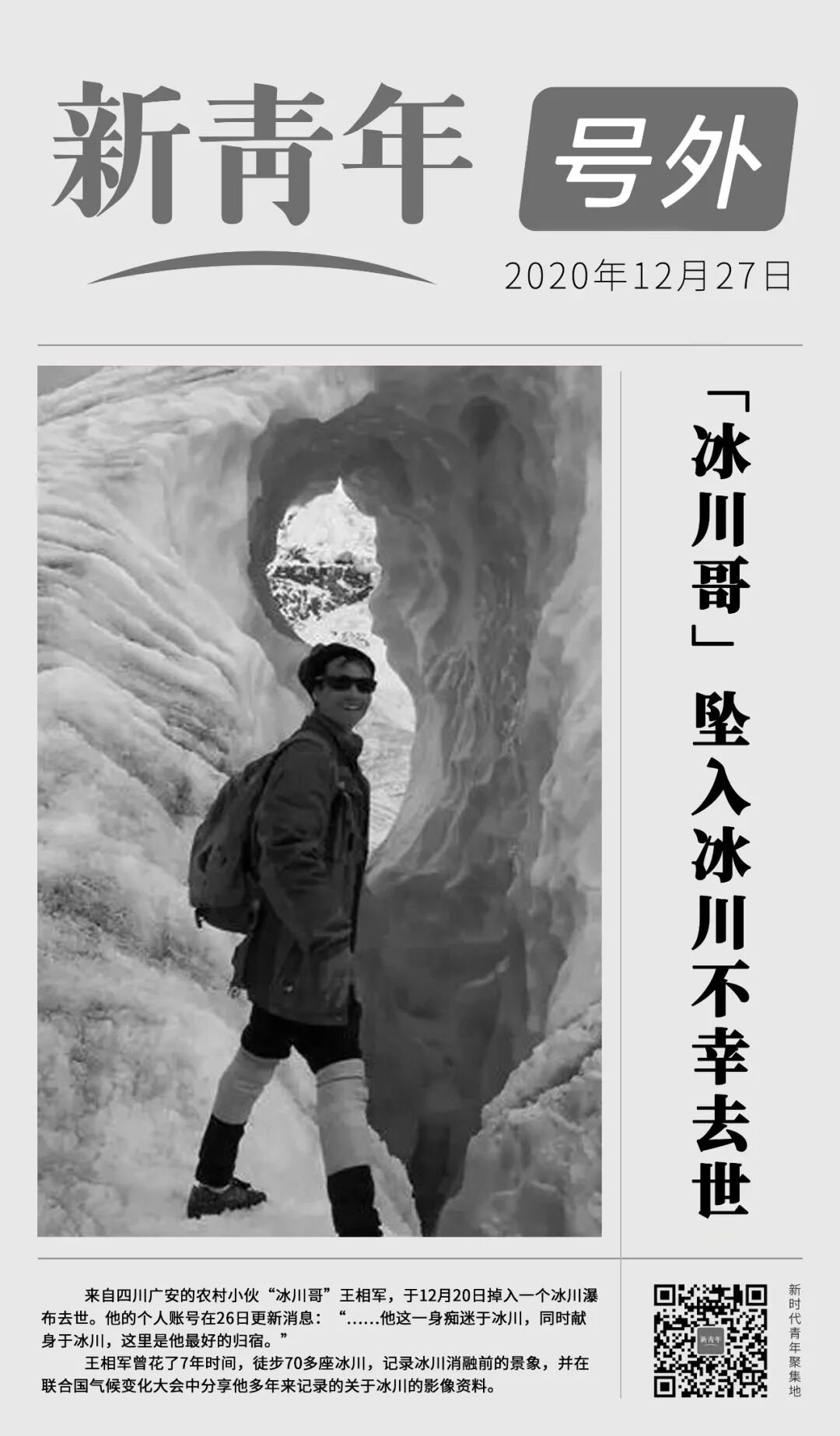 永远地留在了他最热爱的冰川
