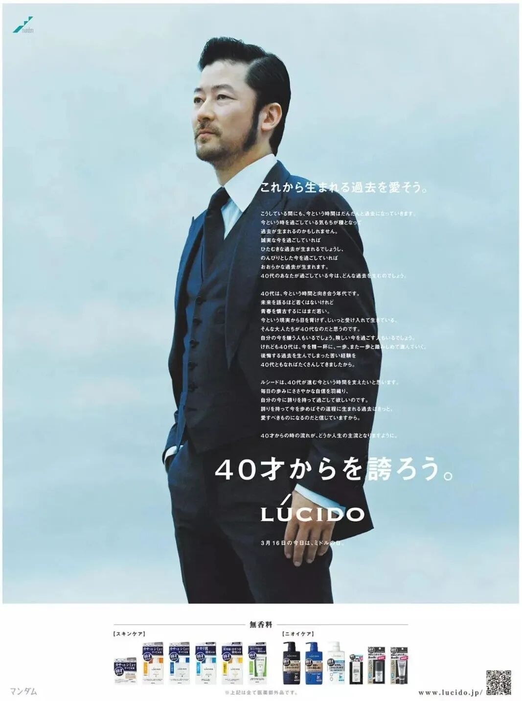 某商家推出的针对40岁以上男性推出的护肤化妆系列广告