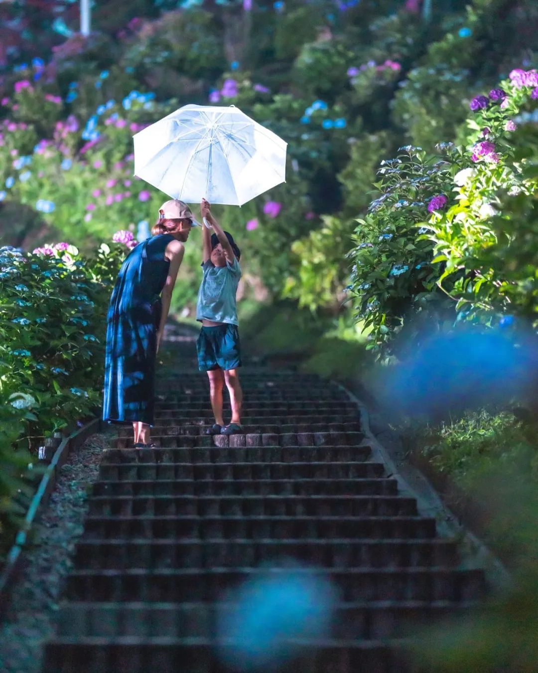 稻垣先生和妻子相识于1999年,拍拖十年,结婚十年。天还没亮,小俩口就牵着手去看日出,云晖曜闪,此刻浪漫无价。为了把老婆拍得好看,稻垣一咬牙,买下了一部 135mm SONY a7。“怀孕,生产,哺乳,当我看到妻子变成妈妈时,我发誓要用一辈子去爱她。”他的镜头里,很少有特写和摆拍,稻垣总是远远地跟在身后,等清风来,待绣球开,捕捉一瞬,光圈有了温度。有的时候,母子俩甚至只是画面里遥遥的两点,但风里有故事。