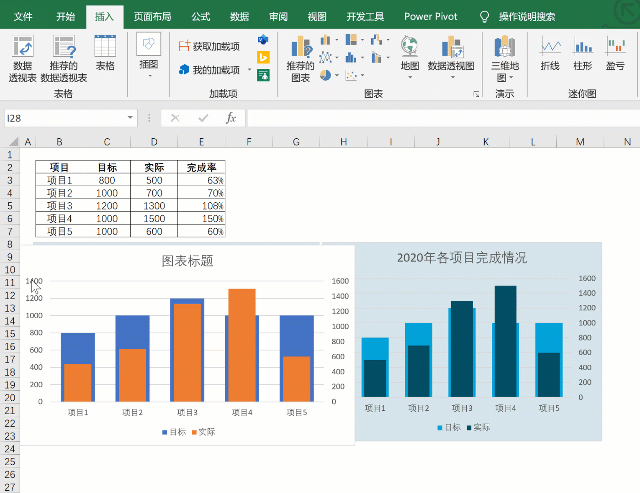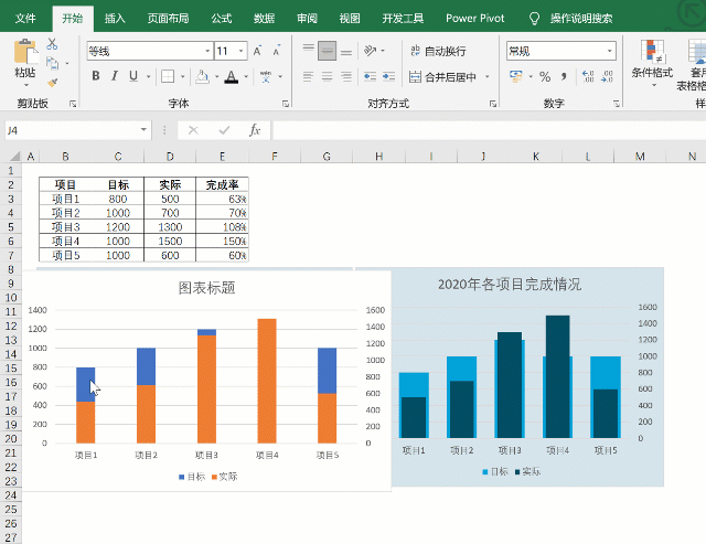 2.大小柱形图重叠在一起