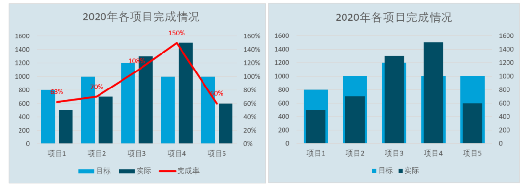 年底了,要开始总结一年的工作完成情况,纯文字说明远比不上图表。今天,卢子介绍2种常用的目标和实际分析图,让领导一目了然。