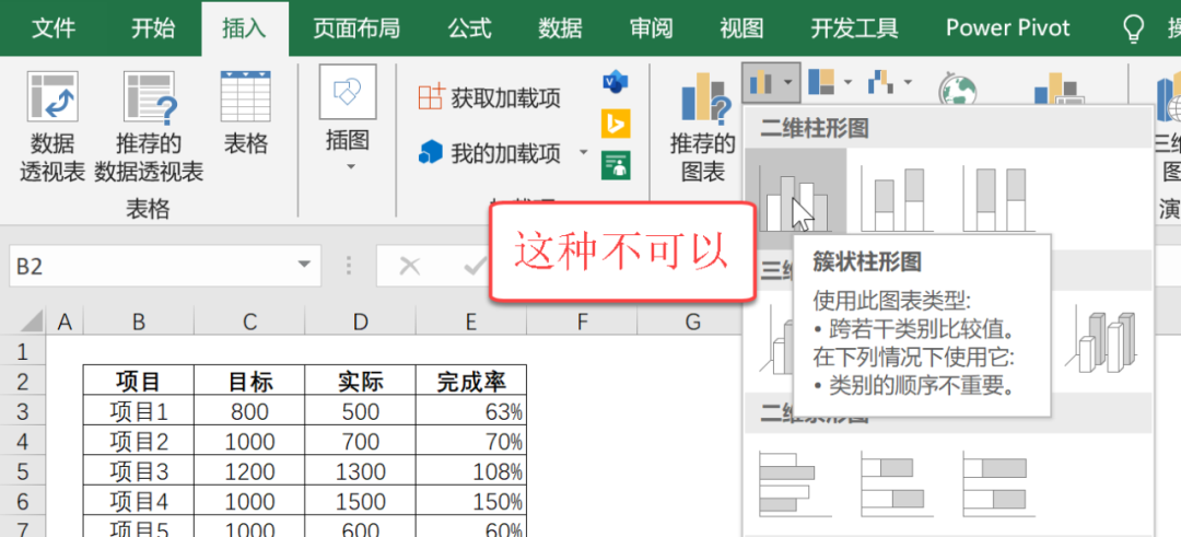 将目标的间隙宽度改成60,实际的间隙宽度改成100,这样就变成大小柱形图。