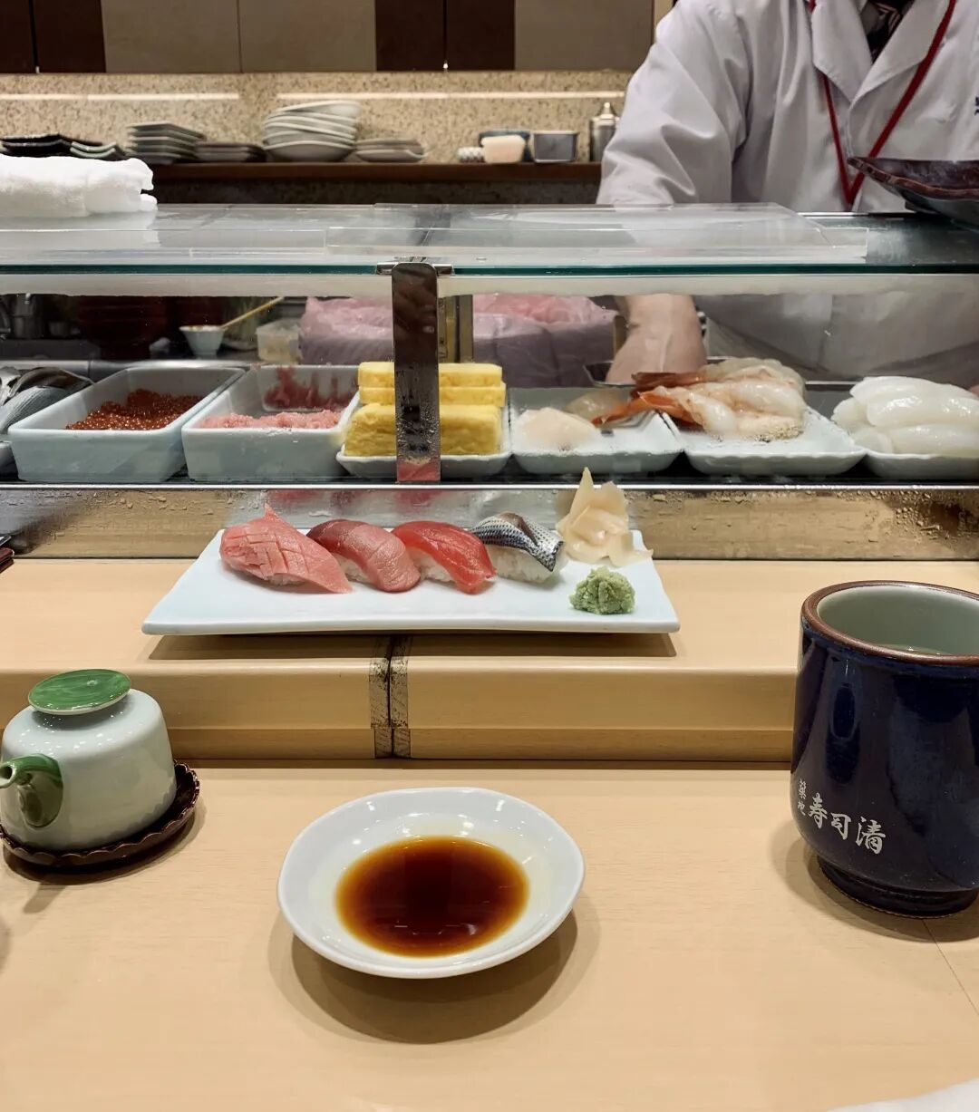 从小山市乘新干线到达东京站大概在上午 10 点左右,先少吃些东西再去逛,寿司清是发源自筑地市场的寿司连锁店,大部分连锁寿司店都以旋转寿司的形式为主,很多都是机器做的寿司,价格虽然讨喜,可食材都严格受到成本控制,出品和味道自然仁者见仁。
