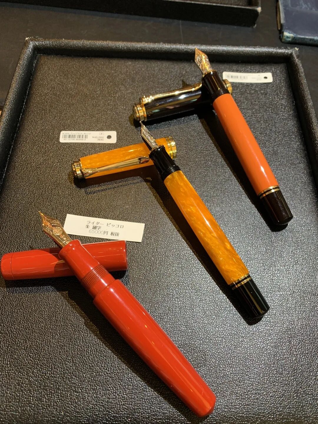 泰八郎刚刚在金子眼镜店试戴后感觉很好,可还想去试试法国产的 Lesca 后再做决定。第一次看到中屋万年笔的实物,比想象中的要轻很多,也可能是自己喜欢用重笔写字,最终也没购买,当然这是个人习惯,并非主观的消费意见。