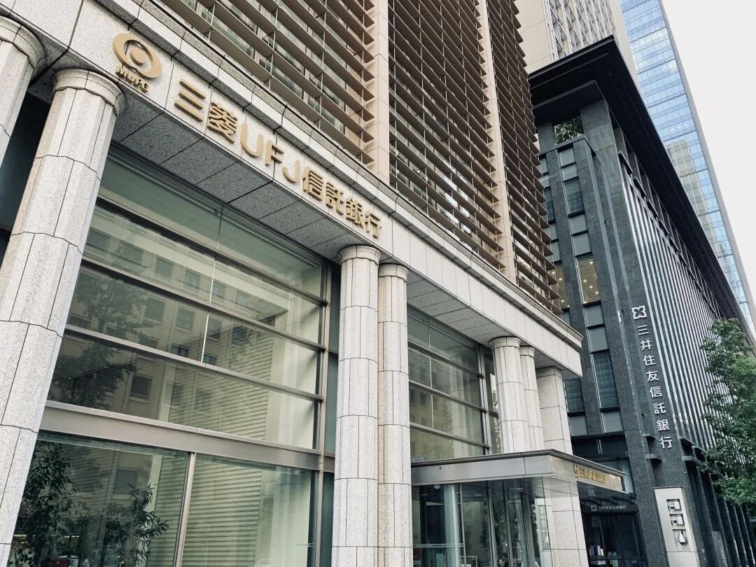 从 KITTE 出来后往大手町的方向,可以看到三菱 UFJ 信托银行和三井住友银行的本部大楼,有趣的是三井住友银行的总部大楼虽然在丸之内,但旧三井财阀在东京的代表区域是在日本桥,因为日本桥多为酒店和商业购物区。丸之内早期入驻企业均为旧三菱财阀的成员企业或业务关联企业,如三菱御三家即:三菱 UFJ 银行、三菱重工、三菱商事的本部大楼都在丸之内。