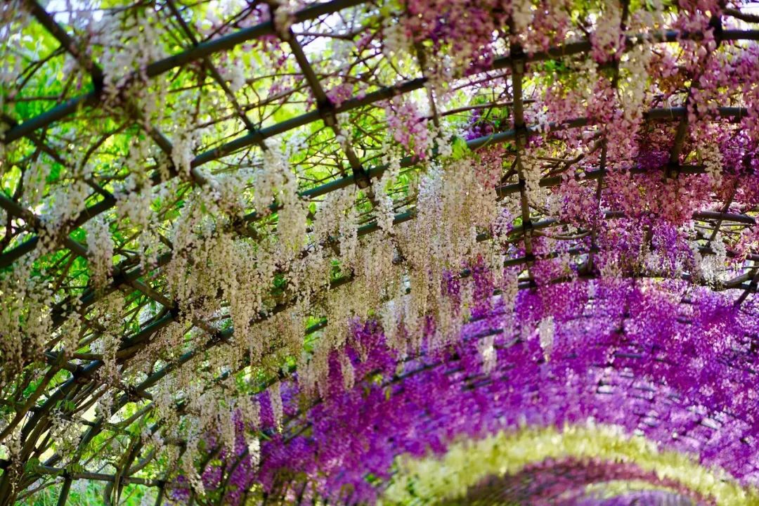 紫藤花开花真美,像瀑布一般,大家看到的下图效果,都是园艺工人冬剪的功劳,没人管理的紫藤,开花质量参差不齐,效果杂乱,可没有这么美。