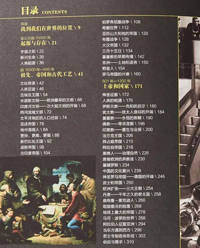 全书把人类历史分为9个时代,每个时代用10个左右的专题事件说明。