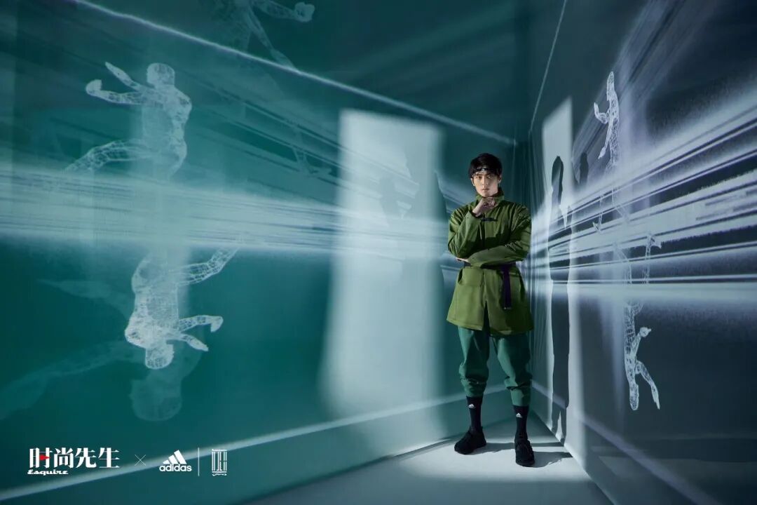 陈靖可也正式成为了阿迪达斯品牌挚友,作为武打新星,在“武极”系列中初露锋芒。今天阿迪达斯武极系列的拍摄让他很有灵感。一进入到影棚,映入他眼帘的是明亮的黄色,一些形似太极服的服装,“我第一次真切地感受到其他人视角里的武侠是什么样子的,特别是影像上的表现,能直观地看到大家对武侠的一百种理解。”在这些招式里,他特别喜欢降龙十八掌,作为耳熟能详的招式,它是至阳、至刚的,但它又是极简、极具力量的,“这和我们‘武极’的概念非常相像,像是一个藏锋者,有锋芒,又不外露,也像一个习武之人非常厉害,但又不轻易展现。”