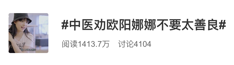 前几天小编在网上冲浪的时候被欧阳娜娜的一条相关热搜引得问号三连。看到#中医劝欧阳娜娜不要太善良#也是心中百思不得,怎么越看越有《甄嬛传》内味儿了。