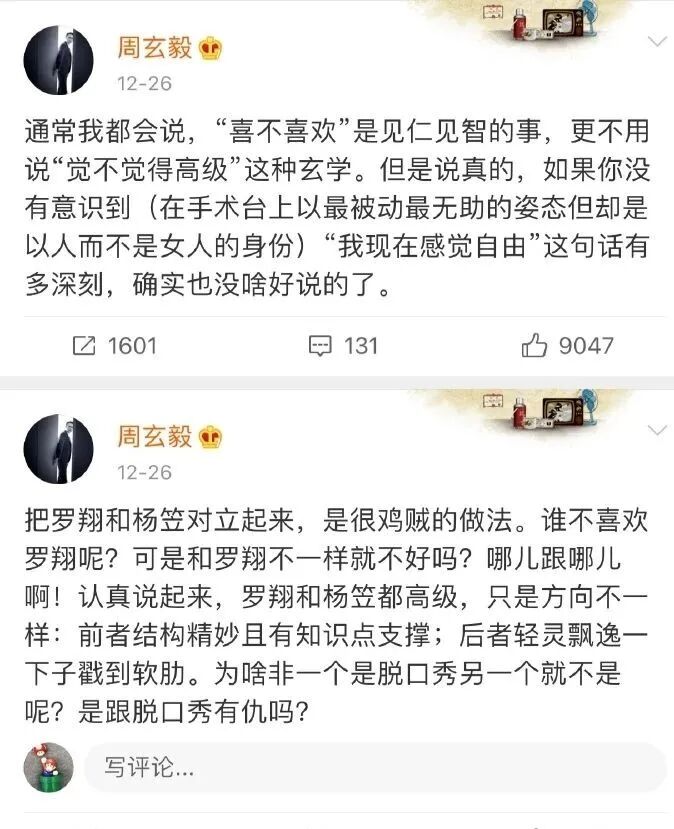周玄毅:前者(罗翔)是脱口秀为啥后者就不是,是和脱口秀有仇吗?而且这才哪到哪?