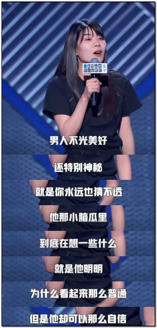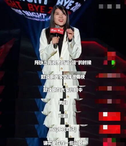 但是关于一些关于男人是“垃圾”、男人是“见仁(贱人)见智”等观点就太以偏概全。她明知道在节目上这些效果会加成,会翻倍,却开始享受“流量”带来的红利,输出一些一些口水的段子。
